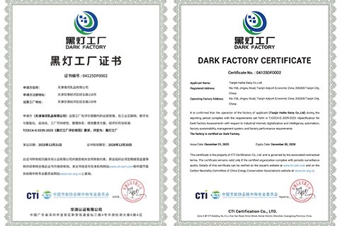 海河乳品公司斩获全国乳企首张黑灯工厂证书